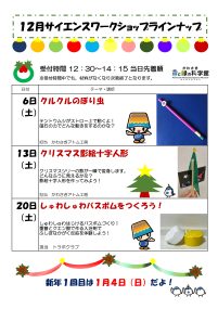 12月のサイエンスワークショップラインナップ(PDF形式・164KB)